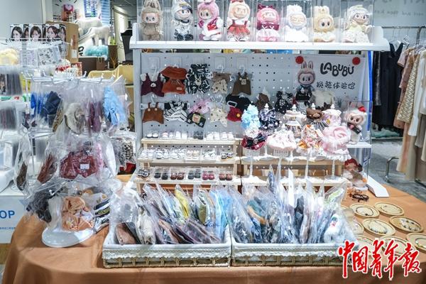 王杰的娃衣换装体验馆展示的娃衣、配件等。中青报·中青网见习记者 陈宇龙/摄