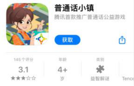 绿色游戏测评报告:《普通话小镇》绿色度6+,2D休闲公益类手机游戏?!镀胀ɑ靶≌颉肥怯商谘蹲访渭苹陀镂某霭嫔缌贤瞥?,腾讯追梦计划和畅游联合研发的普通话学习游戏。该游戏以教育部、国务院扶贫办、国家语委推普脱贫攻坚行动计划为指导,以《普通话1000句》为内容蓝本,以“三区三州”等贫困地区青壮年为主要用户,通过小镇养成的核心玩法,寓教于乐,助力普通话学习。游戏在下载页面存在适龄提示:4+。